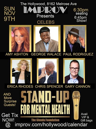 Celebs Stand Up For Mental Health Comedy Benefit @ Hollywood IMPROV Get your tix on the link below. Paul Rodriguez, George Wallace, Jonathan Kite, Mike E. Winfield , Garrett Morris, Erica Rhodes and